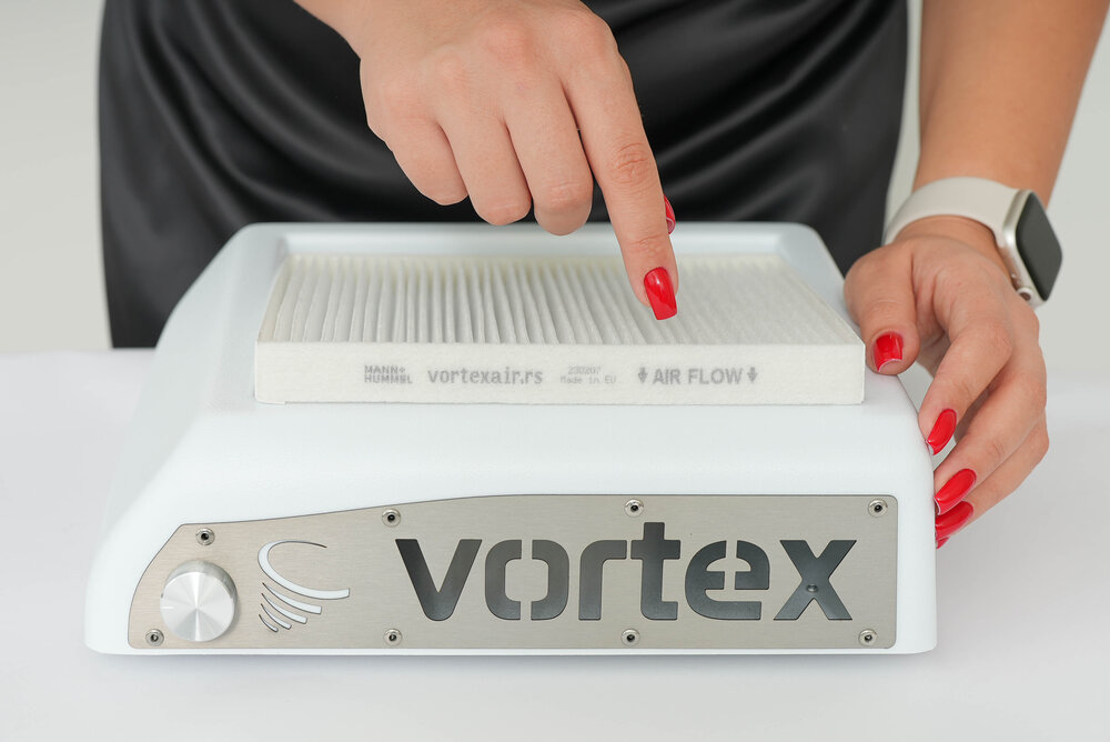 Vortex Dust Collector je profesionalni aspirator za sakupljanje prašine . Primena našeg uređaja je široka. Najviše se koristi za manikir i pedikir u salonima za nokte, ali se koristi i kod zubnih tehničara kao i u proizvodnji nakita, zapravo za sve profesionalce koji se bave brušenjem različitih materijala. Dovoljno je snažan da pokupi sve od najsitnijih do najkrupnijih obrušenih matrijala u različitim branšama.