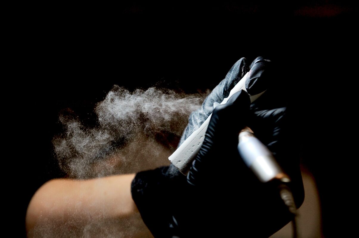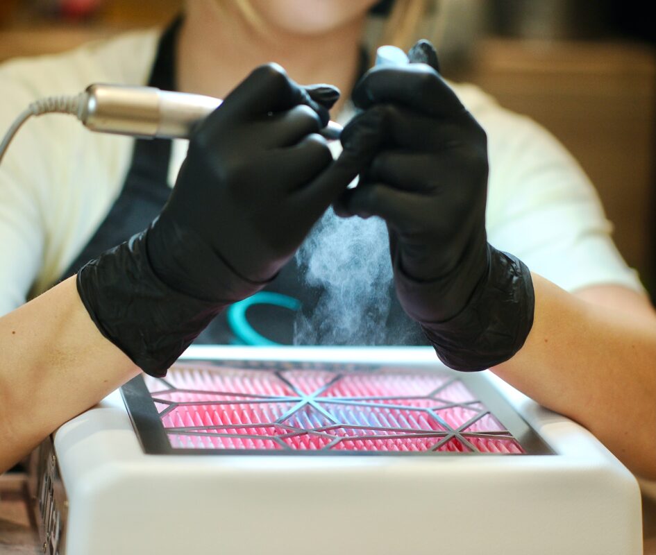Air that contains dust created by grinding materials from the nail plates over time can cause various types of chronic allergies such as swelling or itching, as well as the appearance of fungi, and the most dangerous is the deposition of the finest, almost invisible dust particles that easily reach the nose and throat and penetrate deep into the lungs, directly attacking the respiratory system.